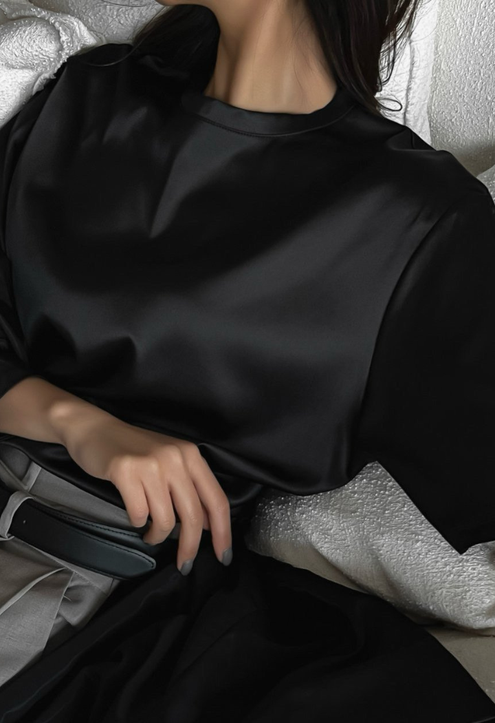 Silky black Satin T-shirt
